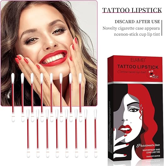 - Liquid Lipstick Cotton Swab - Creative pattern cigarette box design, make you a dazzling woman in the crowd. This new cotton swab lipstick will not stick to the cup or fade. You can take out the cotton swab lip glaze from the box when you are out on a date and need to touch up your makeup. The plump makeup and long-lasting moisturizing show your charm.