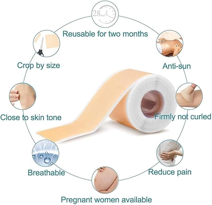 Transform the appearance of scars with these premium silicone scar sheets. Each pack includes two generous rolls measuring 2 metres x 1.5 metres, providing ample coverage for various scar types. These medical-grade silicone sheets are designed to help improve the appearance of surgical scars, C-section marks, burn marks, and acne scars. The flexible and comfortable material adheres gently to the skin, making it suitable for daily wear. These sheets work by creating an optimal healing environment, helping to soften and flatten raised scars while potentially reducing discolouration. The sheets can be trimmed to fit any scar size, offering a customised solution for your specific needs. For best results, apply to clean, dry skin and wear consistently as directed. These silicone sheets are a practical choice for those seeking to address the appearance of both old and new scars.